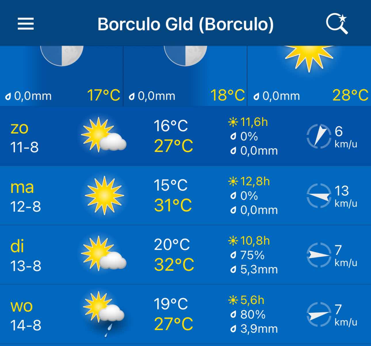 Het weer de komende drie dagen