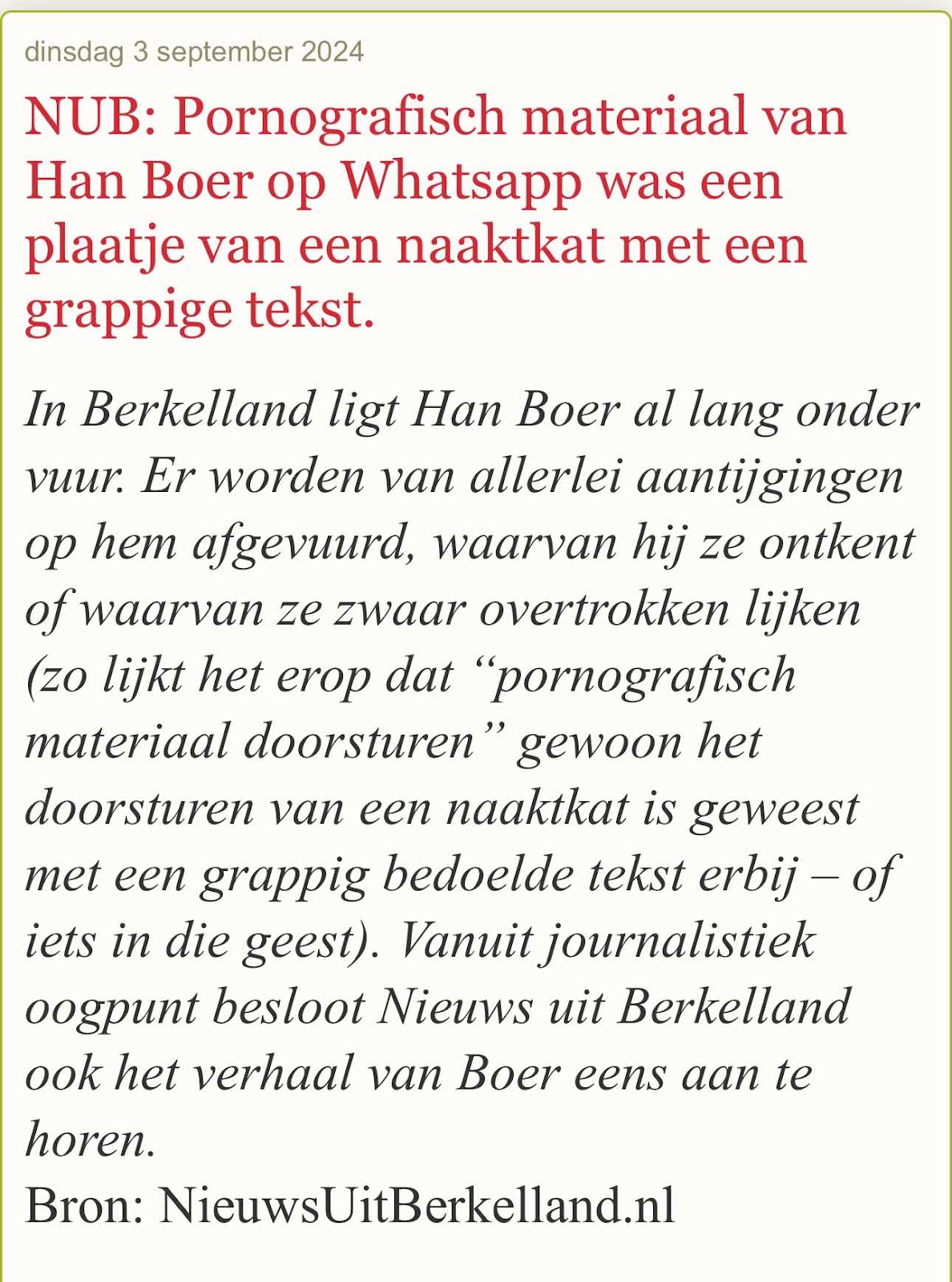 Nieuws uit Berkelland en meer. Lokaal nieuws toegelicht . . .